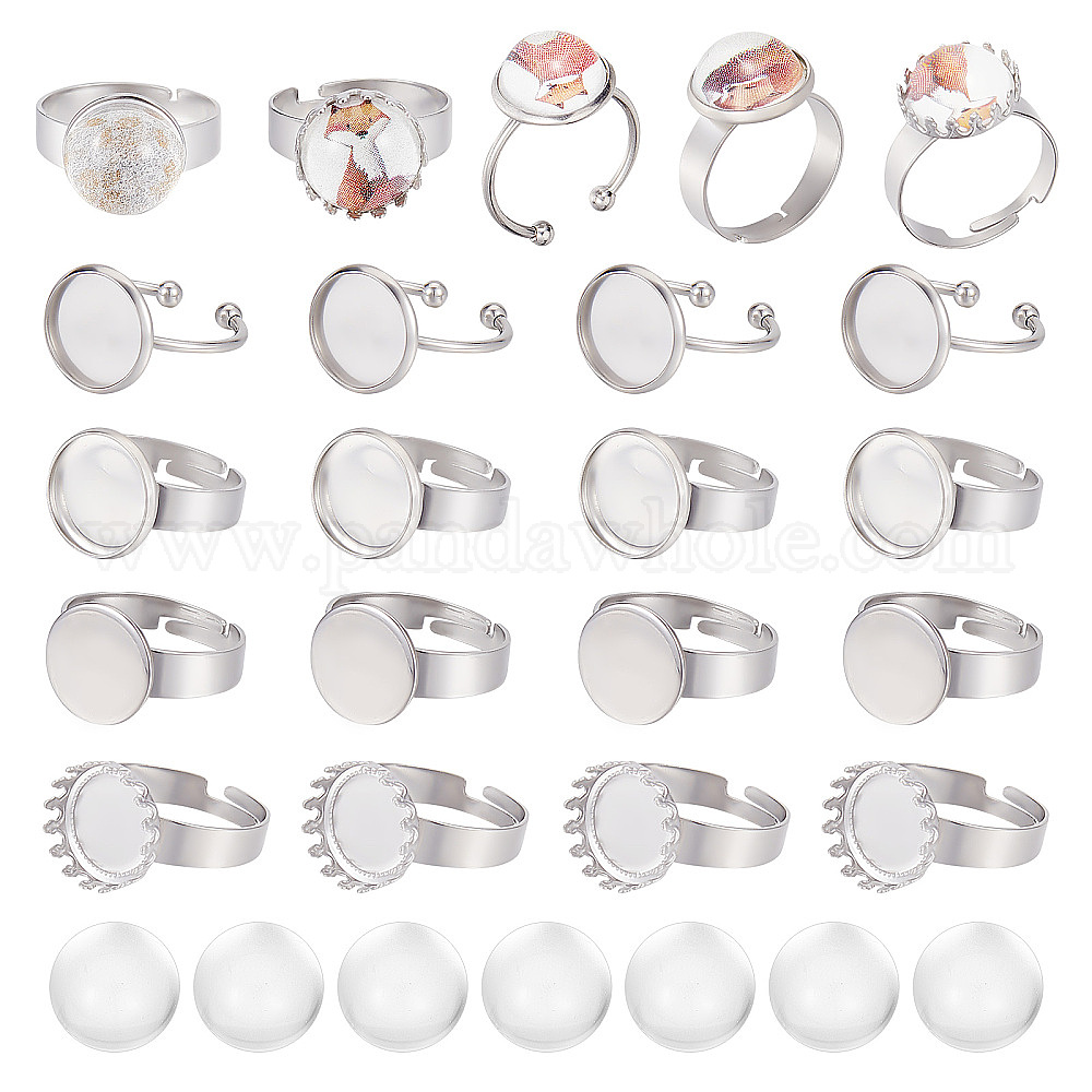 • Нержавеющая Сталь Цвет Набор для самостоятельного изготовления полукруглого куполообразного кольца для пальца, в том числе регулируемые кольца из нержавеющей стали и кольцевые накладки на манжетах, Кабошоны из стекла, цвет нержавеющей стали, 40 шт / коробка
