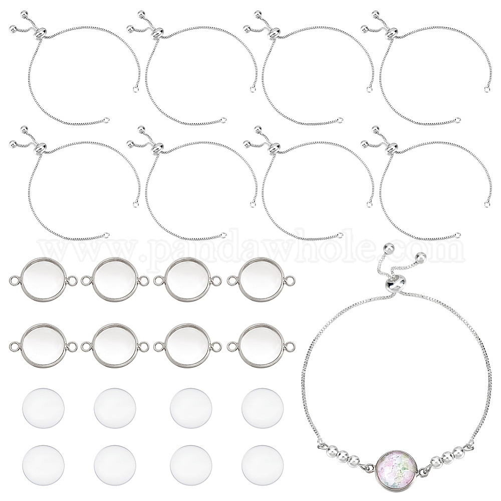 • Серебро Набор для самостоятельного изготовления браслета со слайдером из купольного звена, включая изготовление браслета с ползунком из латунной коробки и настройку разъема кабошон, Кабошоны из стекла, серебряные, 24 шт / коробка