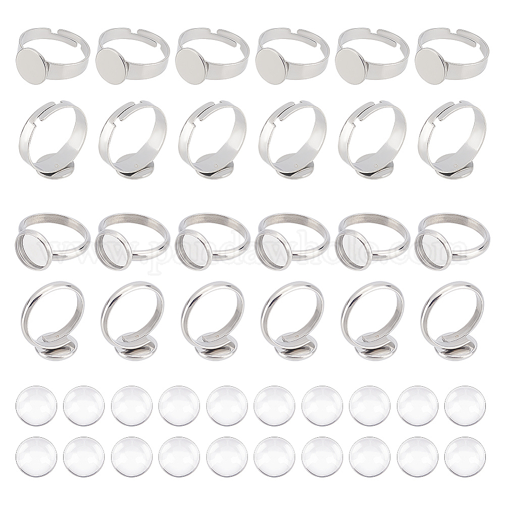 Набор для изготовления пустого купольного кольца, включая регулируемые 304 компоненты колец из нержавеющей стали, полукруглые стеклянные кабошоны