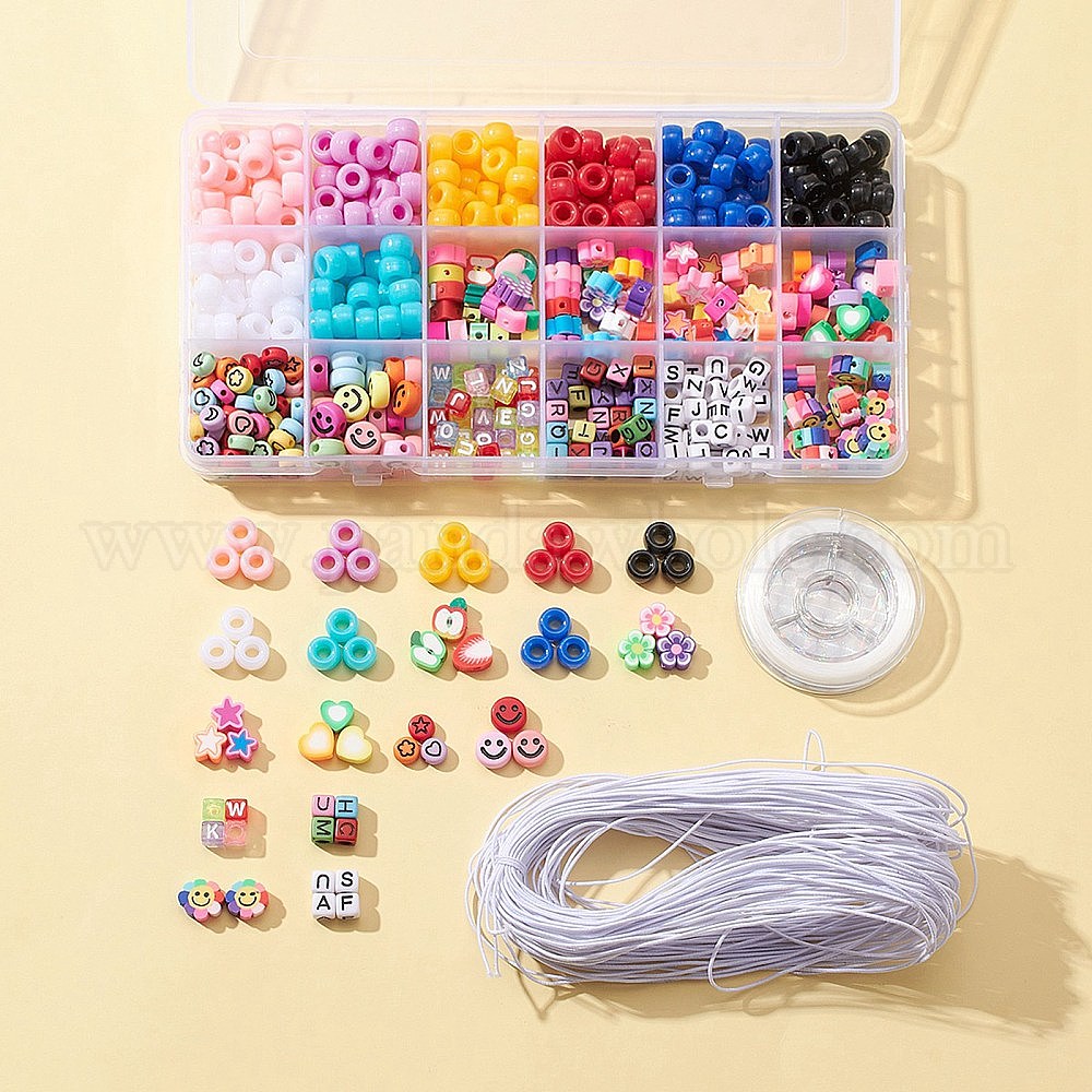 Набор для изготовления браслета карамельного цвета своими руками, в том числе акриловые европейские и полимерные бусины из глины, цветок и фрукты и звезда и улыбающееся лицо и сердце