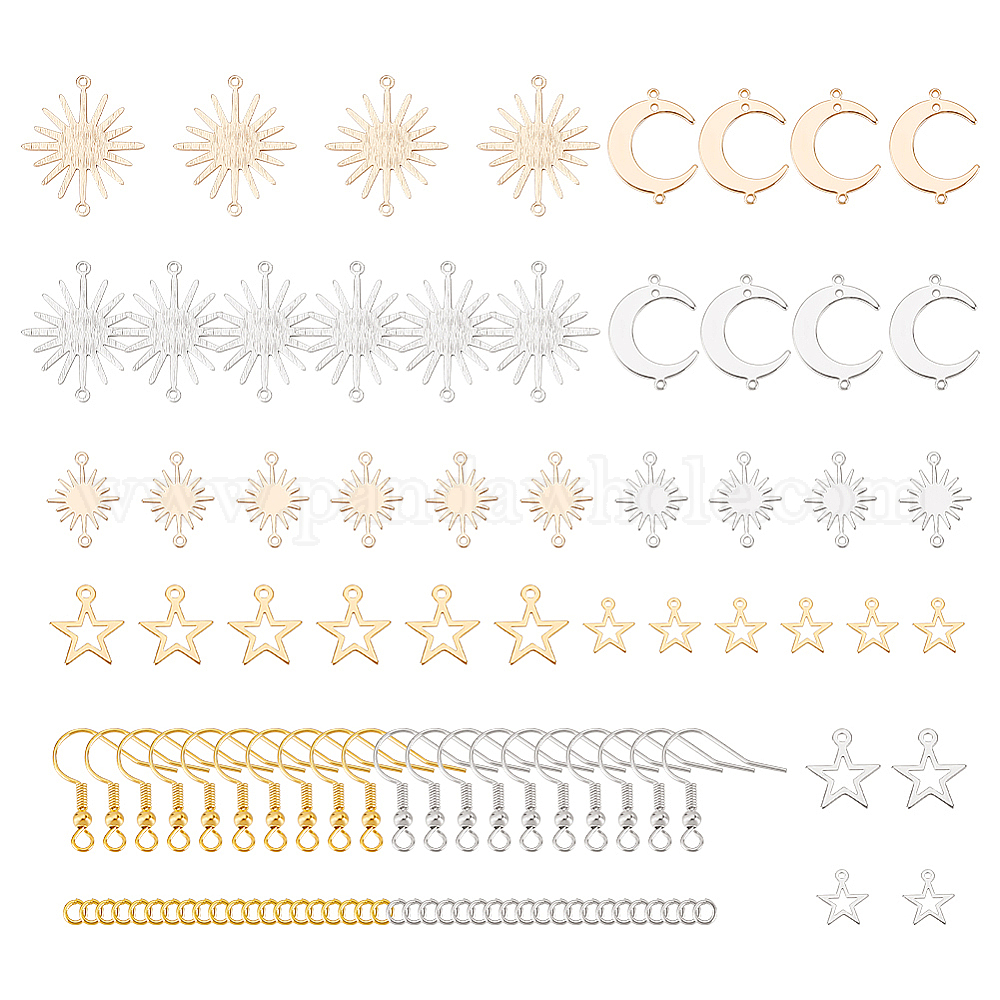 Набор для самостоятельного изготовления сережек в виде солнца, луны и звезд, включая латунные соединители и подвески, 304 подвески из нержавеющей стали, Железные крючки для сережек