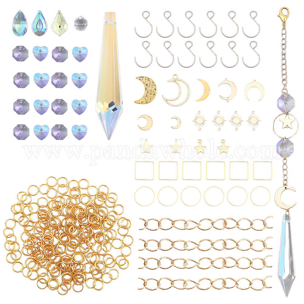 Наборы для изготовления ловца солнца своими руками, включая стеклянную каплю, металлические S-образные застежки, кулон с луной и звездой/звенья