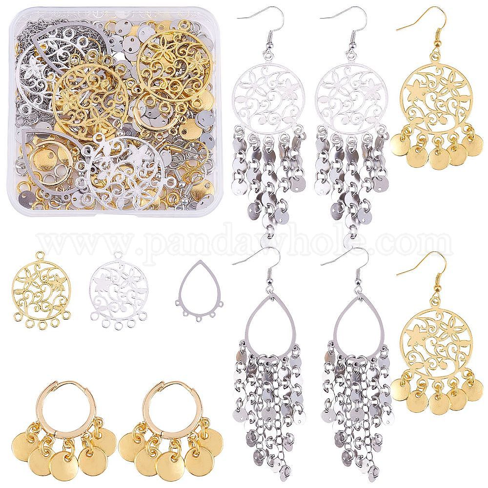 Набор для изготовления сережек люстры своими руками, включая латунные серьги-кольца, ссылка и подвески из сплава, Каплевидные и плоские круглые бордюрные цепи и звенья из нержавеющей стали, Железные крючки для сережек