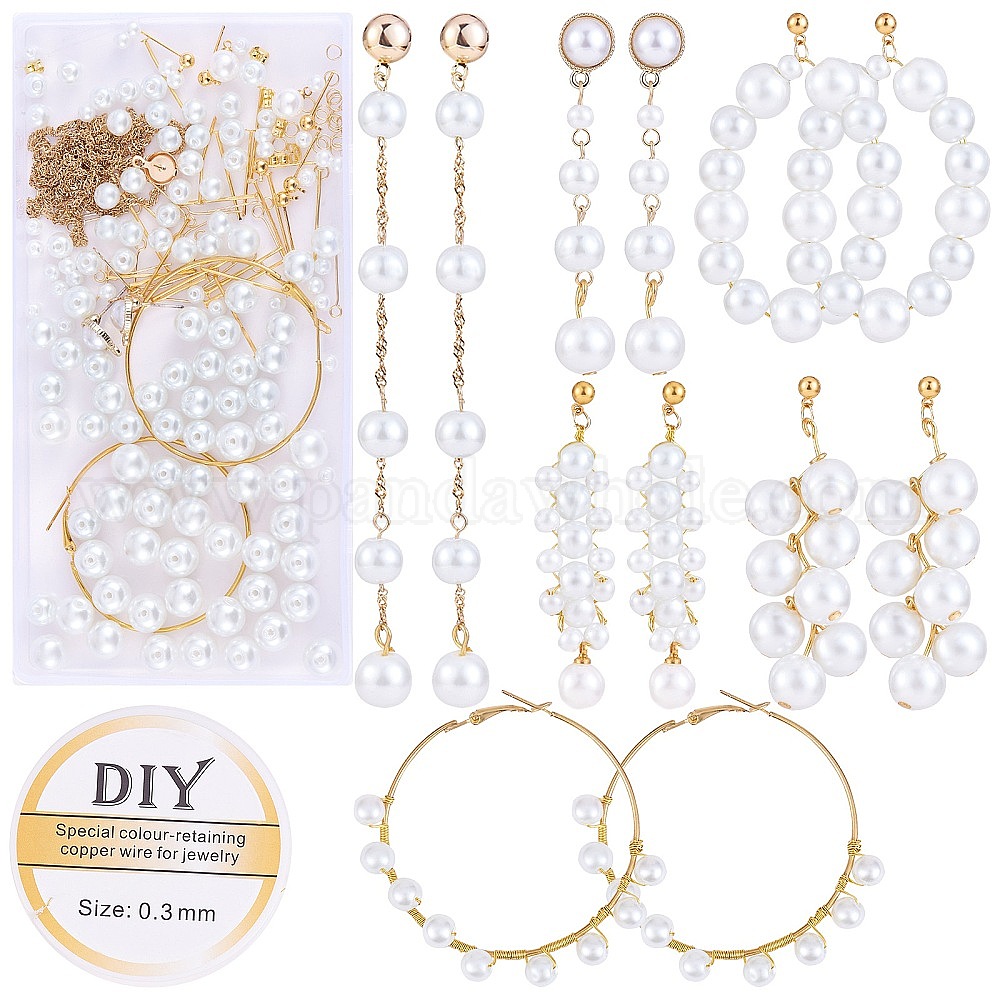 Набор для изготовления длинных сережек с искусственным жемчугом своими руками, включая фурнитуру из сплава, железа и латуни, серьги-кольца, акриловые и стеклянные жемчужные бусины, 304 цепи из нержавеющей стали, медный провод