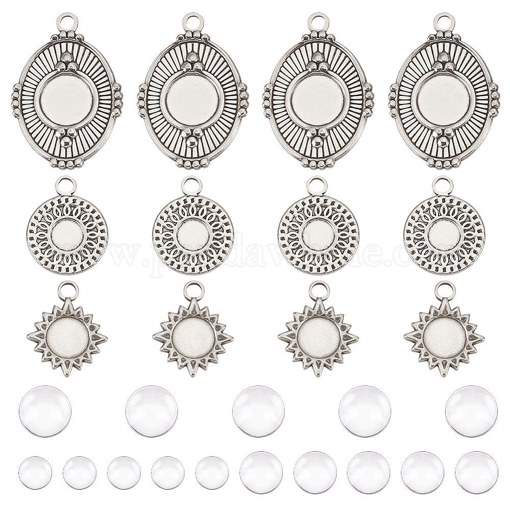 Набор для самостоятельного изготовления пустого фотоподвеса, включая солнце, овал и цветок 304 подвеска из нержавеющей стали с кабошоном, Кабошоны из стекла