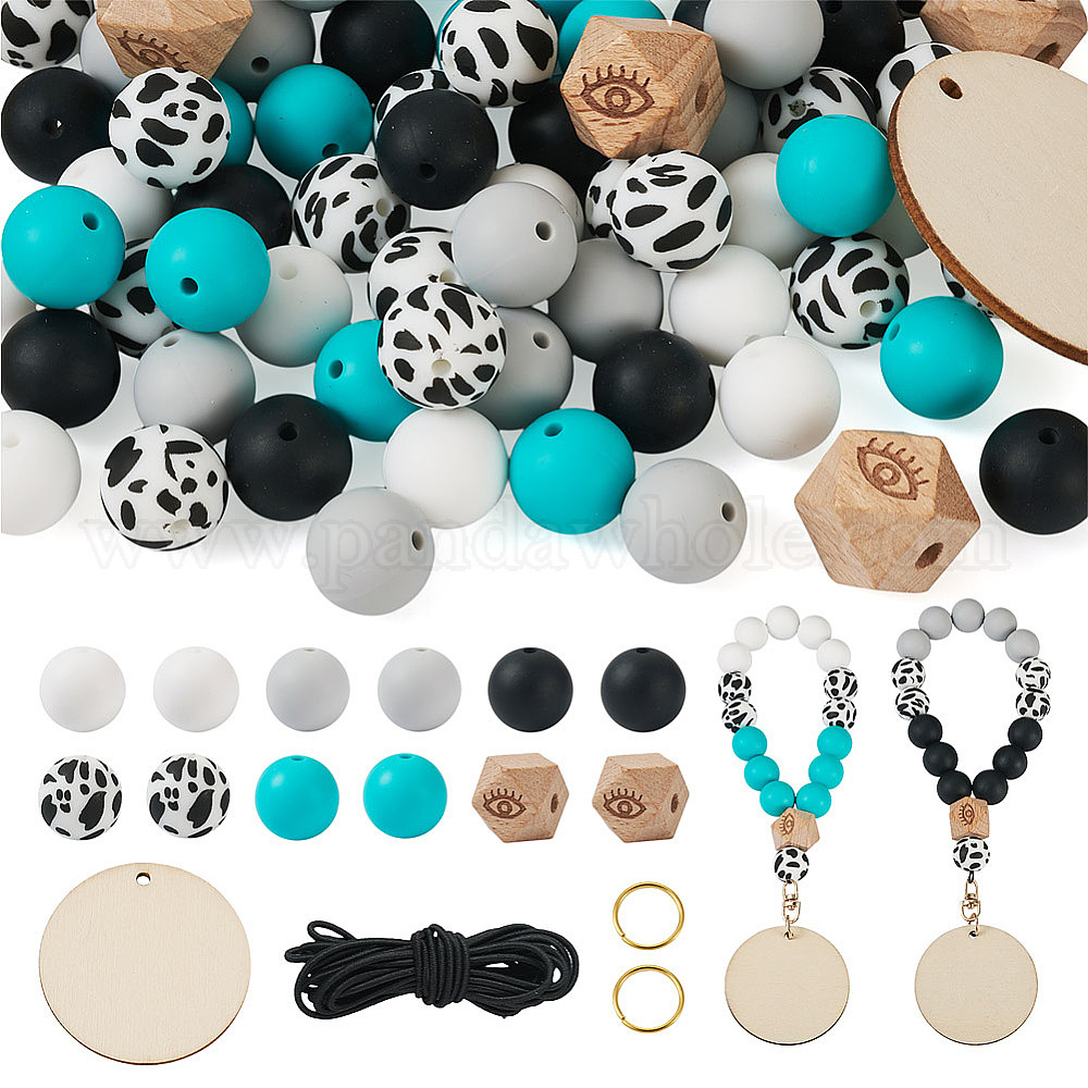 Набор для изготовления кулона из браслета своими руками, в том числе силиконовые круглые с коровьими бусинами, незаконченные подвески из деревянных дисков и европейские бусины, полиэстер эластичный шнур