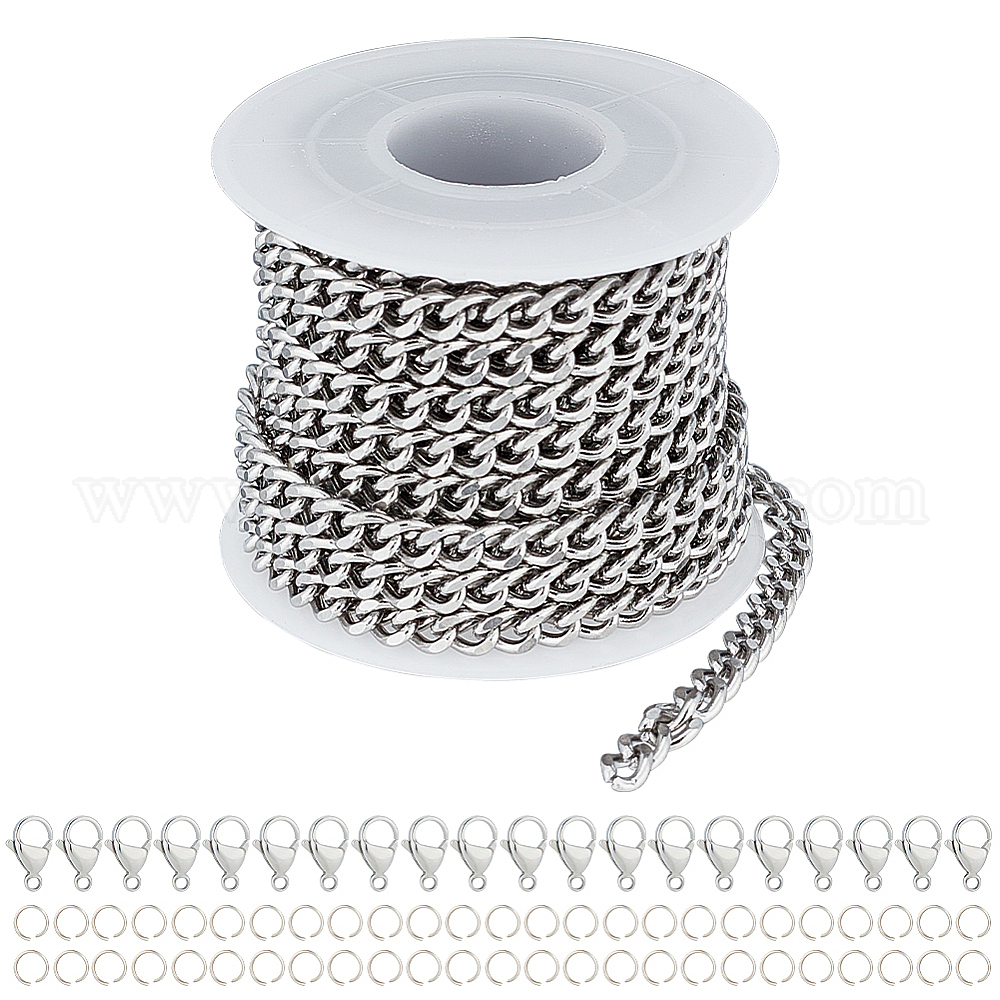 Набор для изготовления браслета-цепочки своими руками, включая 304 застежки-карабины из нержавеющей стали, соединительные кольца и бордюрные цепочки
