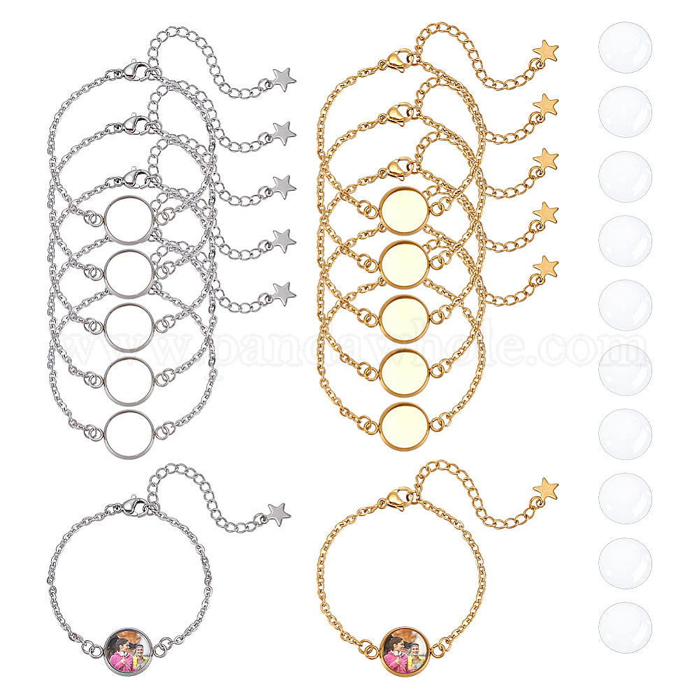 Набор для изготовления браслета с пустым куполом своими руками, включая плоские круглые 304 изготовление браслета из нержавеющей стали, Кабошоны из стекла