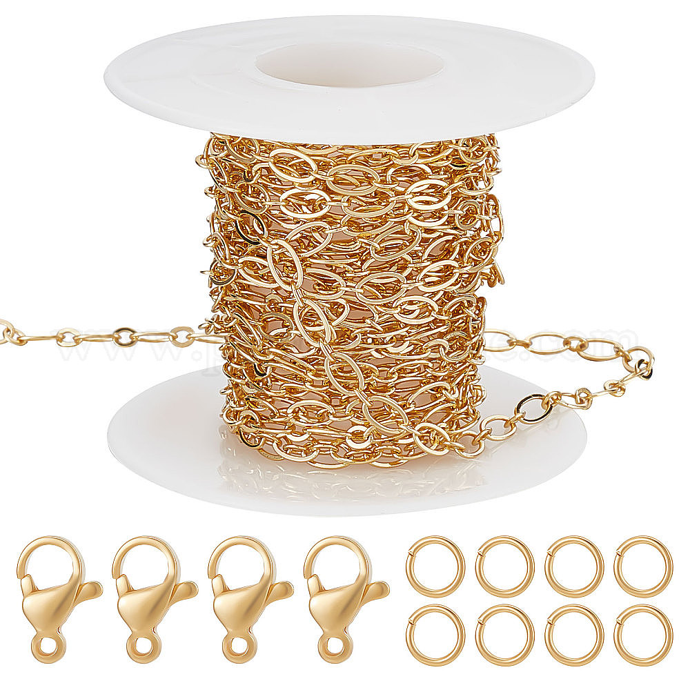 Набор для изготовления браслета-цепочки своими руками, включая латунные цепи Фигаро, цепи с овальными звеньями и соединительные кольца, 304 из нержавеющей стали пряжки