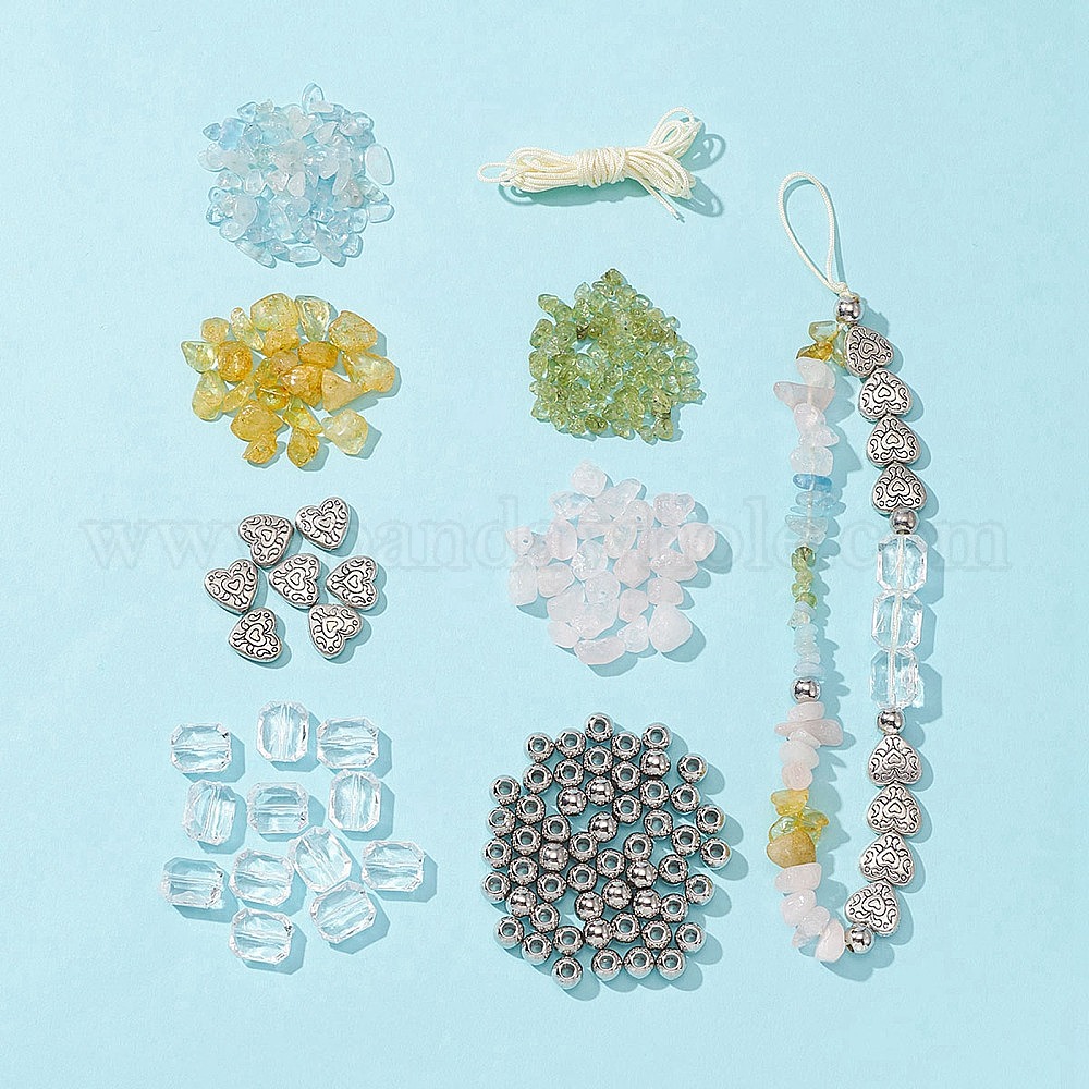 • Смешанные камни Набор для изготовления эластичных браслетов своими руками, включая крошку из натуральных смешанных драгоценных камней и пластиковые круглые и сплавные сердечки и акриловые прямоугольные бусины, нейлона кордной нити