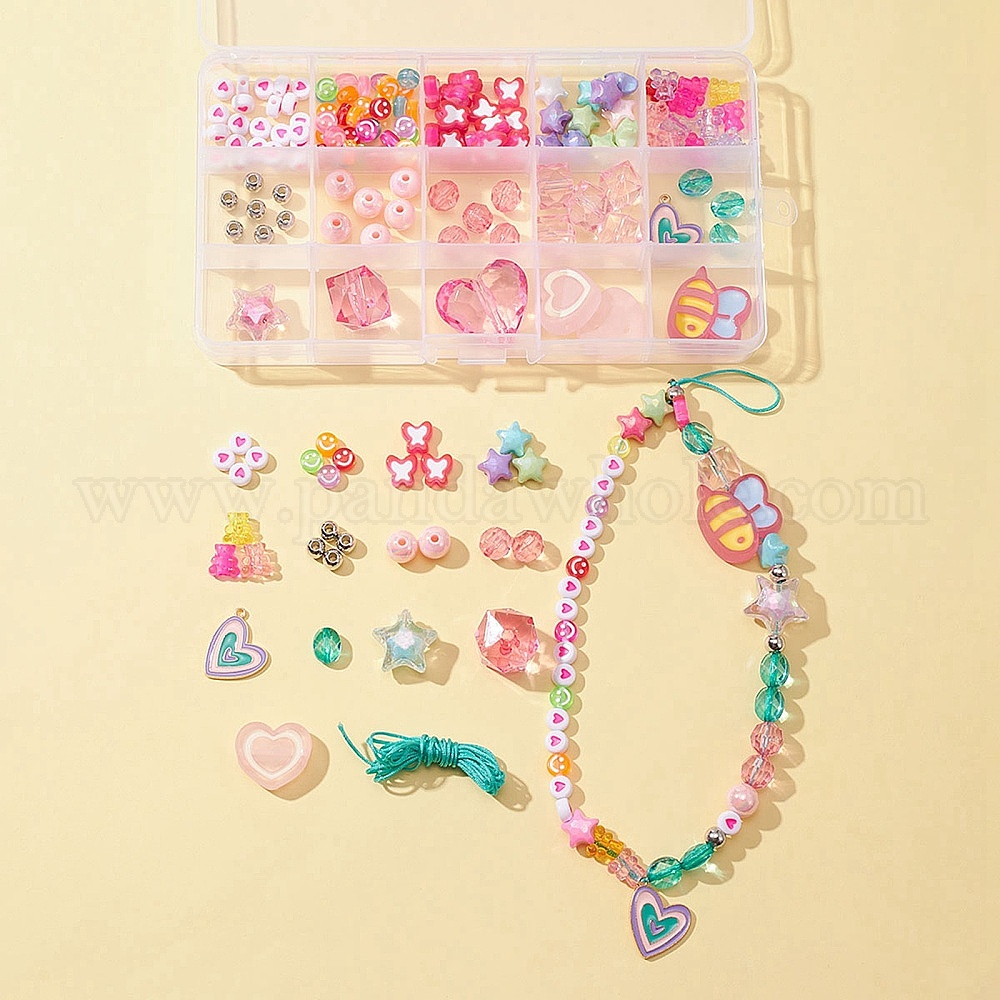 Набор для изготовления эластичных браслетов своими руками, в том числе звезда и медведь и пчела и бабочка акриловые и пластиковые круглые бусины, подвеска из сплава сердца с эмалью, Нейлоновая нить (02GM7B)