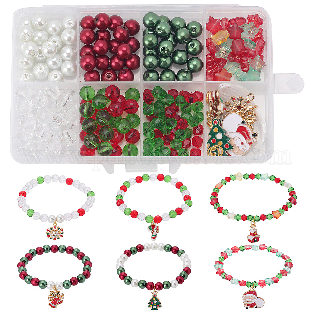 Набор для изготовления новогоднего браслета своими руками, включая стеклянные бусины в форме звезды и биконуса, снежинка, колокольчик, дерево и леденец из сплава с эмалью