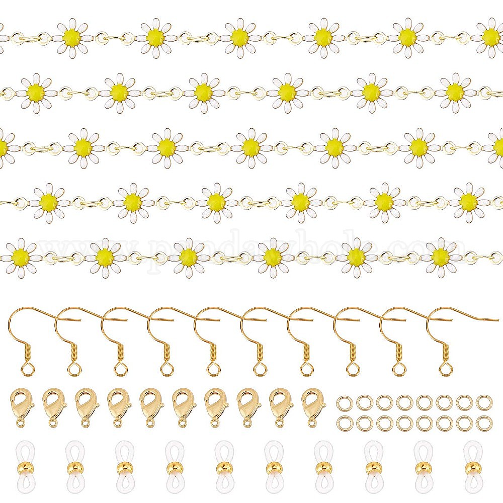 Набор для изготовления браслета-цепочки с цветком маргаритки, ожерелья, сережек с кисточками и цепочек для очков, включая цепи из латунной эмали, латунные застежки-карабины и крючки для серег, держатели для очков