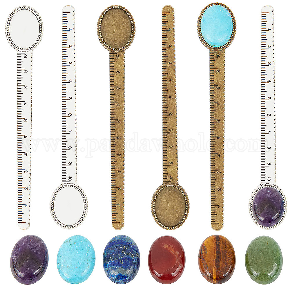Набор для самостоятельного изготовления закладок из прямых линеек, в том числе оправа из сплава кабошон, овальные кабошоны из натуральных смешанных драгоценных камней