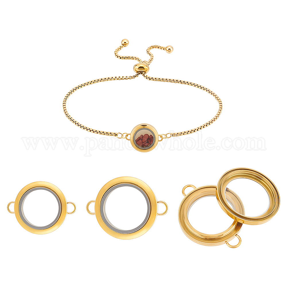 • Золотой Набор для самостоятельного изготовления плавающего браслета с эффектом памяти, в том числе изготовление ползунковых браслетов из нержавеющей стали, плоские круглые медальоны из нержавеющей стали подвески-соединители, золотые, 304 шт / коробка