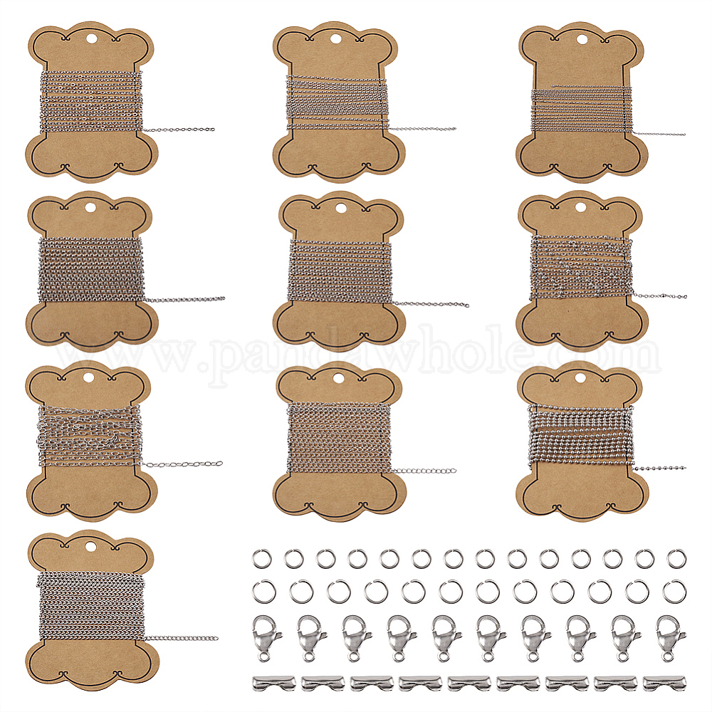 Набор для изготовления браслета с цепочкой своими руками, включая 304 шарик из нержавеющей стали и трос, поперечные и бордюрные цепи, соединительные кольца, застежки и соединители для шариковых цепей