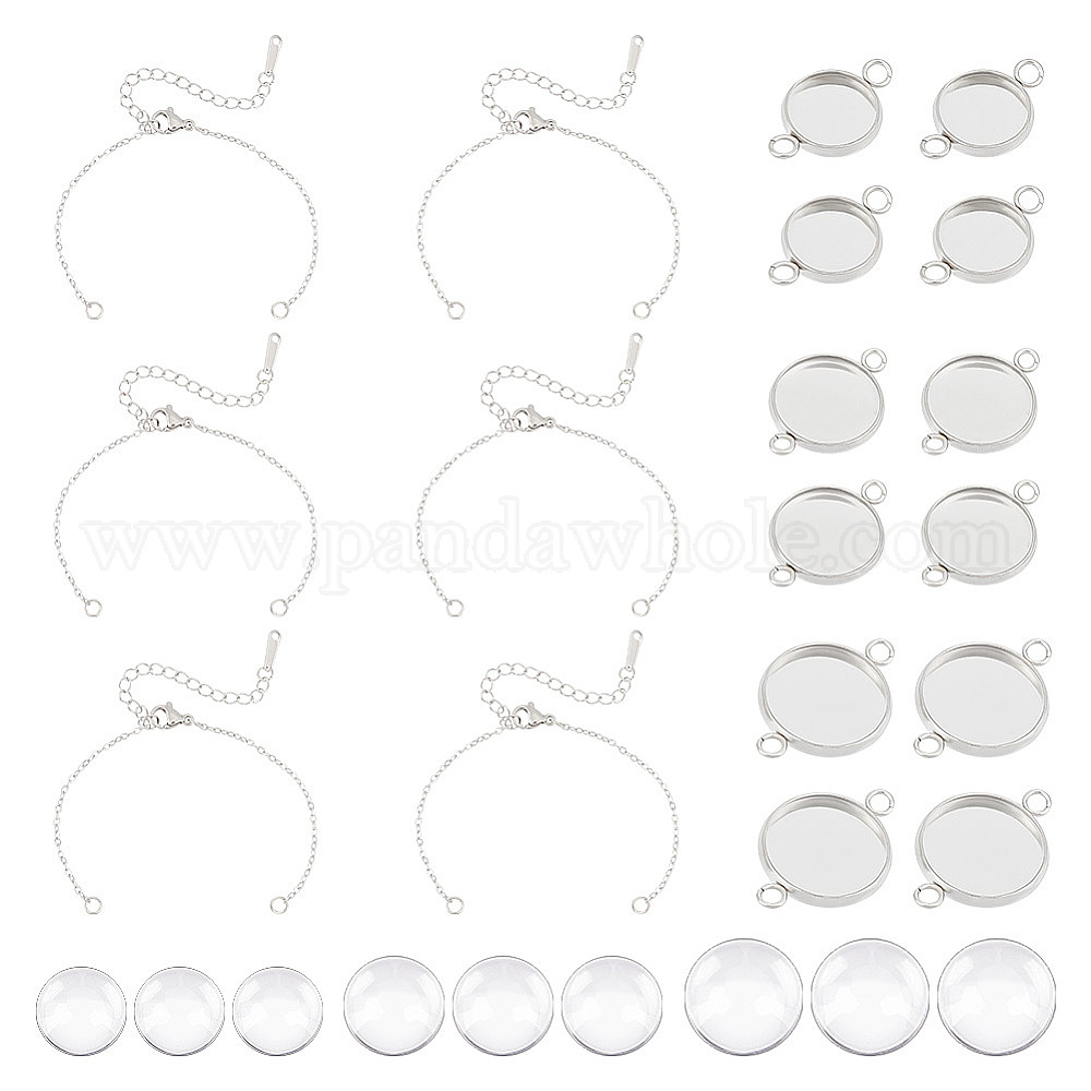 Набор для изготовления браслета из плоских круглых звеньев своими руками, в том числе 201 изготовление браслета из нержавеющей стали, 304 из нержавеющей стали параметров соединителя кабошон, Кабошоны из стекла
