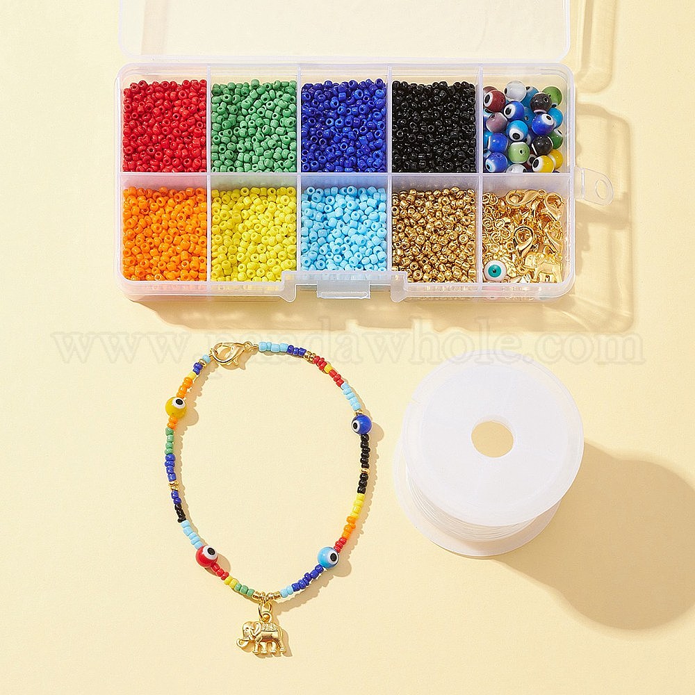 Набор для изготовления браслета сглаза своими руками, включая стеклянные семена и круглые бусины лэмпворк, рука, луна и слон из сплава и 304 подвески из нержавеющей стали