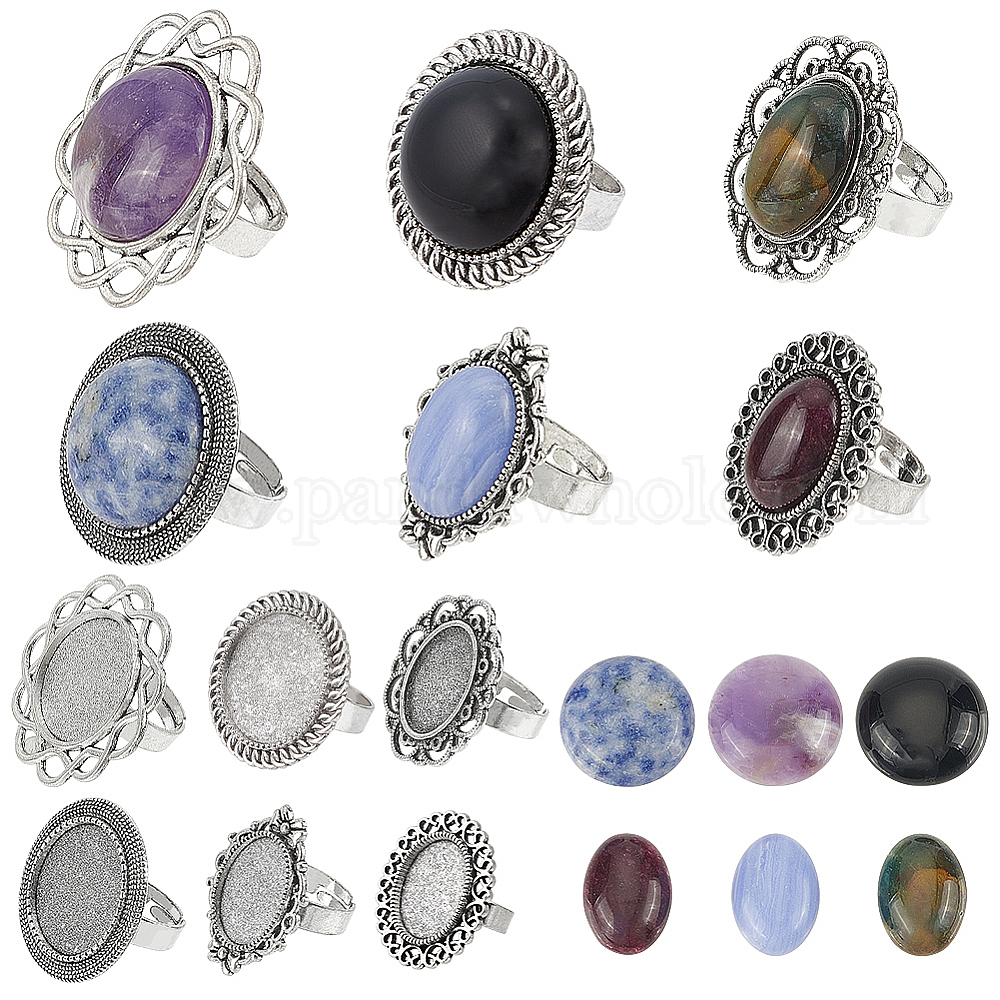 Набор для изготовления кольца на палец своими руками, включая бант, цветок и овальное регулируемое кольцо из сплава, натуральные и синтетические смешанные каменные кабошоны