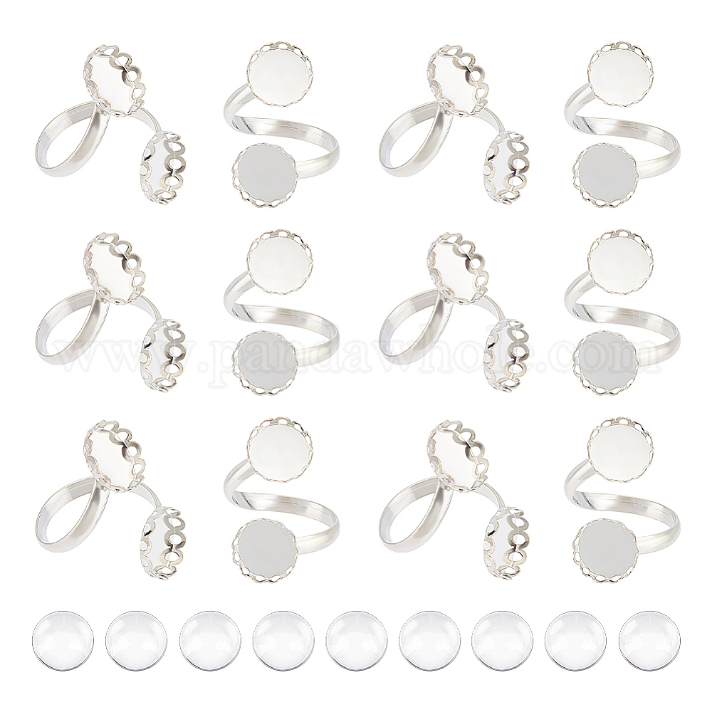 Набор для самостоятельного изготовления пустого купольного кольца, включая плоские круглые латунные открытые кольца для манжет, Кабошоны из стекла