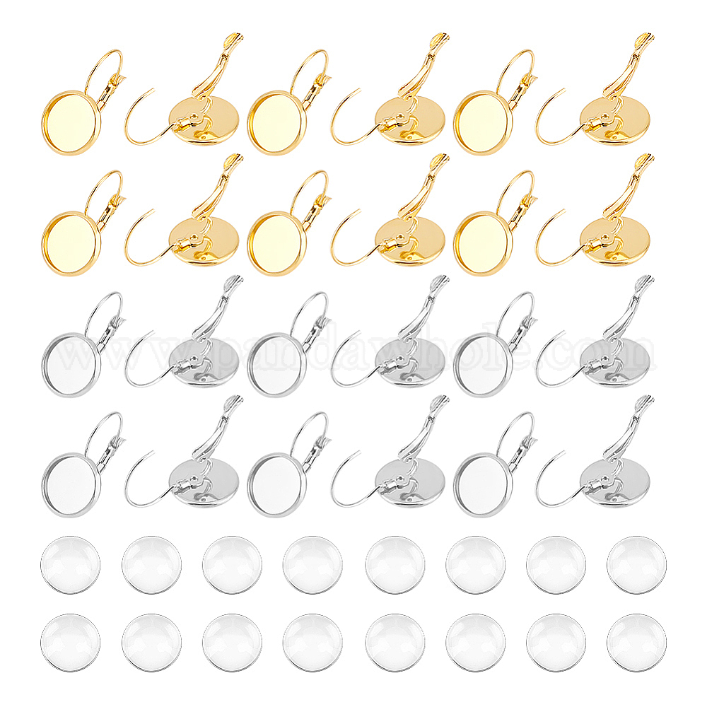 Набор для самостоятельного изготовления сережек-куполов, включая плоские круглые 304 серьги из нержавеющей стали с откидной спинкой, Кабошоны из стекла