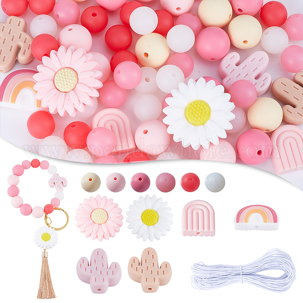 Набор для самостоятельного изготовления светящегося браслета, включая круглые и ромашки, радугу и кактус силиконовые бусины и кабошоны, эластичный шнур
