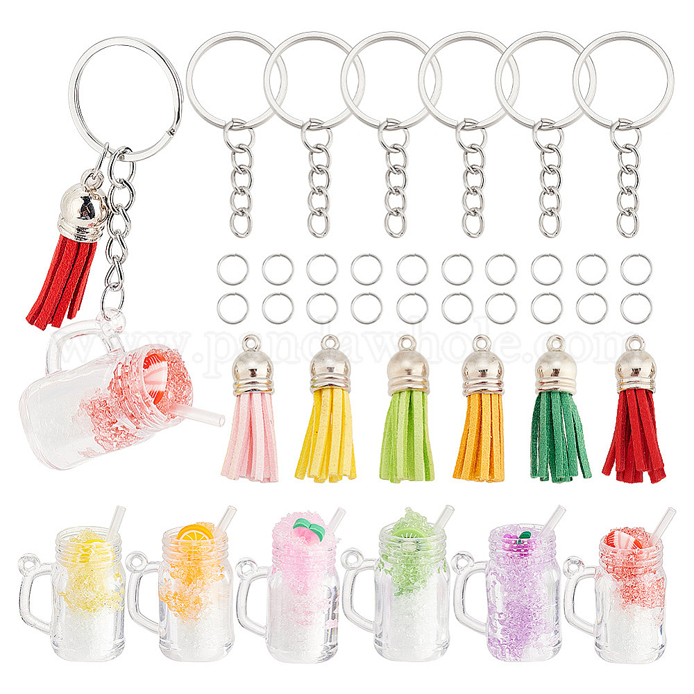 Набор для самостоятельного изготовления брелока в виде чая с молоком, в том числе железные кольца для ключей, кисточка из искусственной замши и пластиковые подвески