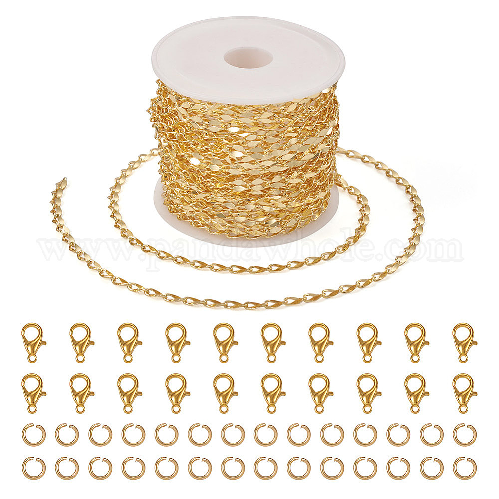 • Настоящее золото 18K Набор для изготовления браслета-цепочки своими руками, включая латунные цепи и соединительные кольца из нержавеющей стали, Сплав застежками когтя омара, реальный 18 k позолоченный, цепь: 5 м / комплект
