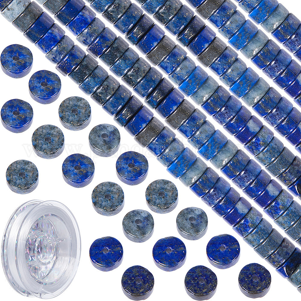 • Ляпис-Лазурь Набор для изготовления браслета из драгоценных камней своими руками, включая плоские круглые бусины из натурального лазурита, эластичная нить, бусины : 6x3~3.5 мм, отверстие : 1 мм, 125~130 шт / коробка