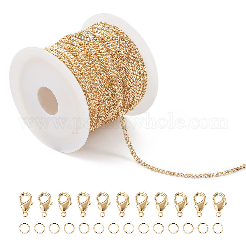 • Настоящее золото 14K Набор для изготовления браслета-цепочки своими руками, включая латунные цепочки и застежки, 304 кольца прыжок из нержавеющей стали, реальный 14 k позолоченный, цепь: 5 м / комплект