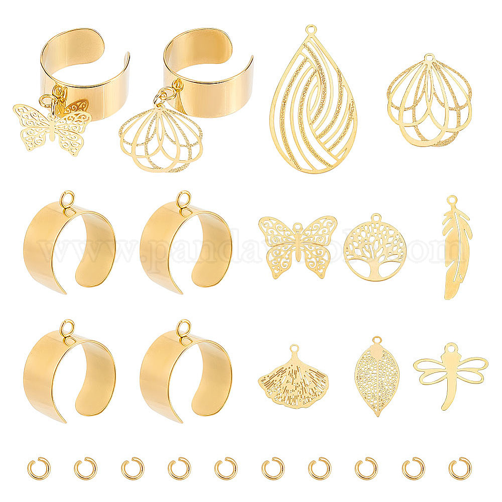 • Золотой Набор для изготовления подвесок-открытого кольца своими руками на весеннюю тематику, включая компоненты кольца пальца манжеты из нержавеющей стали, лист и дерево и цветок и стрекоза 304 и 201 подвески из нержавеющей стали, золотые, 22 шт / коробка
