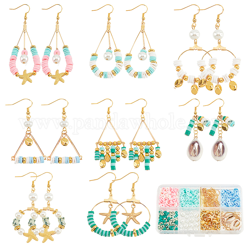 Набор для изготовления геометрических сережек своими руками, включая диск из полимерной глины и стеклянный жемчуг и бусины из сплава морской звезды, 304 подвески из нержавеющей стали, латуни и натуральных ракушек, Латунные крючки для сережек