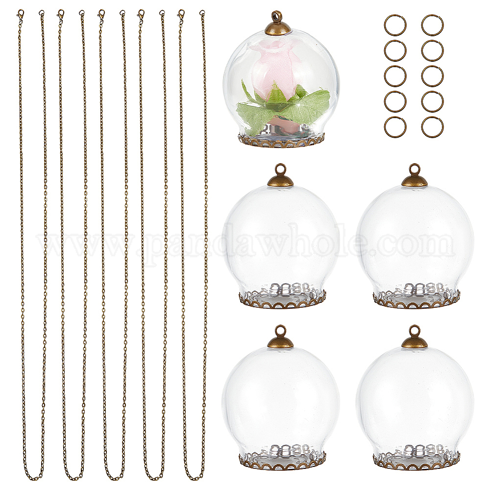 Набор для самостоятельного изготовления ожерелья с подвеской в виде бутылки желаний, в том числе ожерелье из железной цепи, Латунные настройки для размещения кабошонов, стеклянные крышки