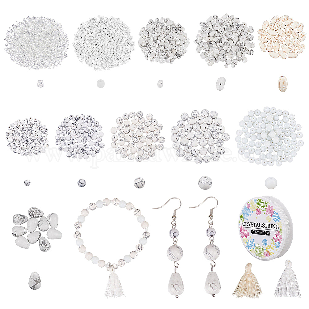 Набор для изготовления браслетов своими руками, в том числе подвески из полиэстера с кисточками, натуральный и синтетический говлит, бирюза и стеклянный бисер