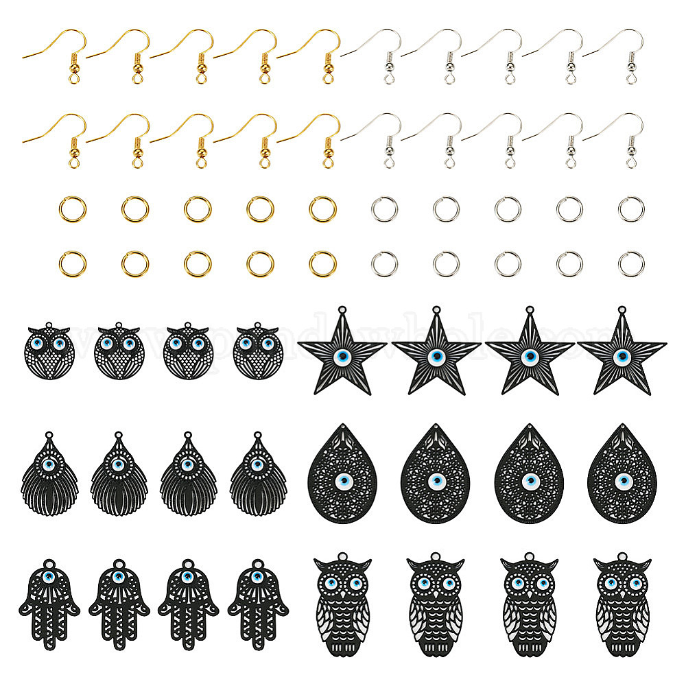 Набор для изготовления сережек от сглаза своими руками, включая слезу, сову и руку хамса и звезду 430 филигранные подвески из нержавеющей стали, латунные кольца и серьги (02J4RC)