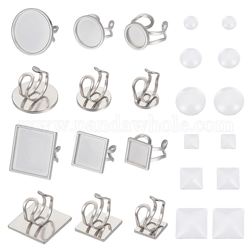 • Нержавеющая Сталь Цвет Набор для самостоятельного изготовления пустого купольного кольца, в том числе плоские, круглые и квадратные 201 кольца манжеты из нержавеющей стали, Кабошоны из стекла, цвет нержавеющей стали, 24 шт / коробка