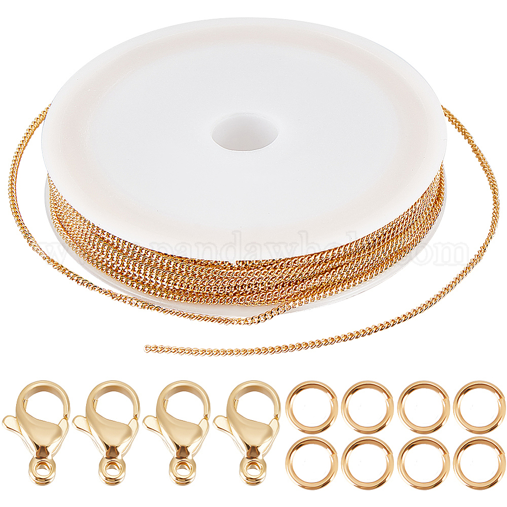 Набор для изготовления браслета-цепочки своими руками, включая латунные бордюрные цепи и соединительные кольца, 304 нержавеющая сталь застежка когтя омара