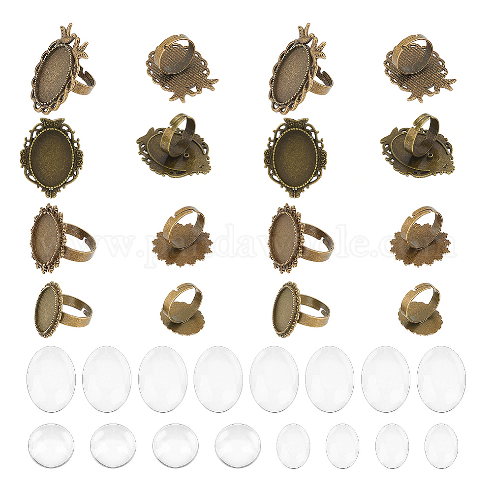 • Античная Бронза Набор для самостоятельного изготовления пустого куполообразного кольца, включая птицу, черепаху и цветок, регулируемый безель из цинкового сплава, настройки кольца для чашек, Кабошоны из стекла, античная бронза, 32 шт / коробка