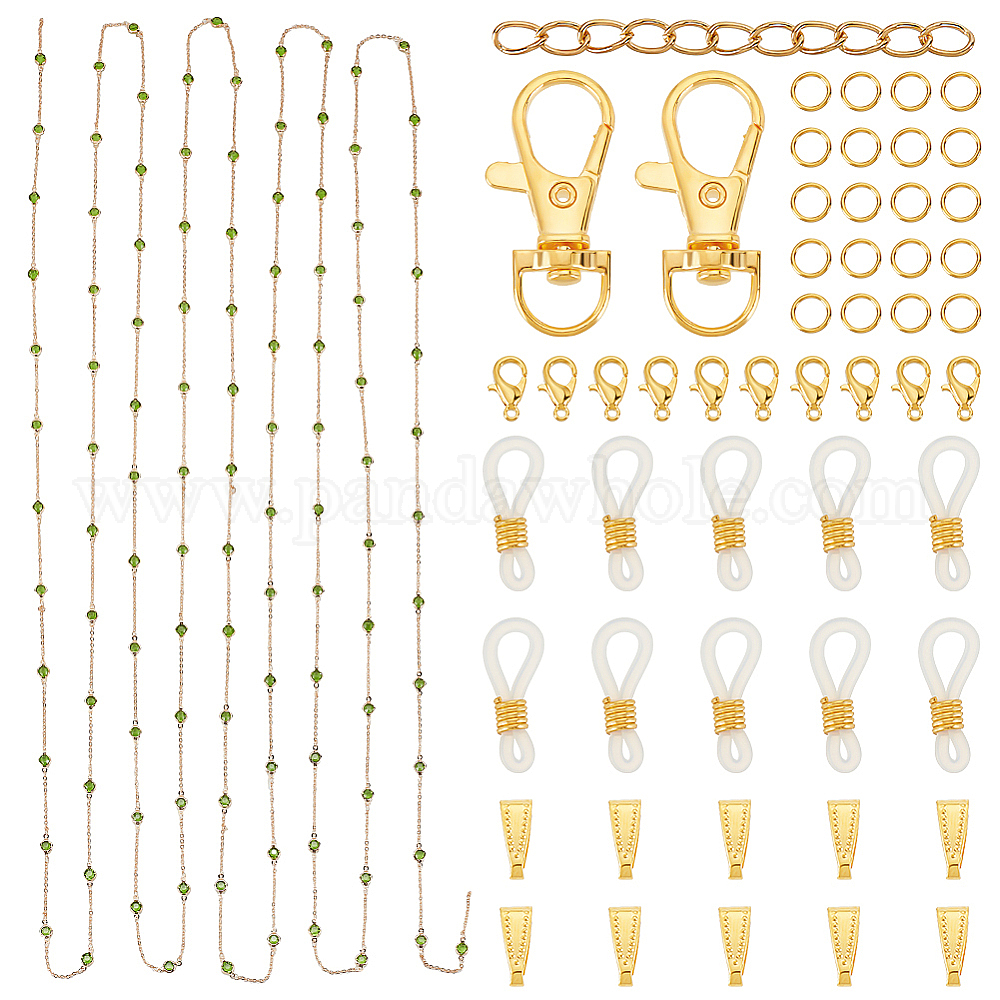 Набор для самостоятельного изготовления браслета-цепочки для очков, включая стеклянные плоские круглозвенные цепи, Сплав застежками, железные прыжковые кольца и концевые цепи, латунь оснастки на поруки, держатели для очков