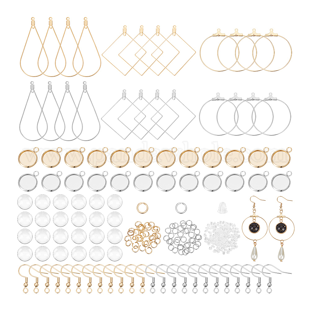 Комплект для самостоятельной сборки сережек-куполов, включая каплю, ромб и кольцо 304 подвески из нержавеющей стали и крючки для серег, пластиковые гайки для ушей, Кабошоны из стекла