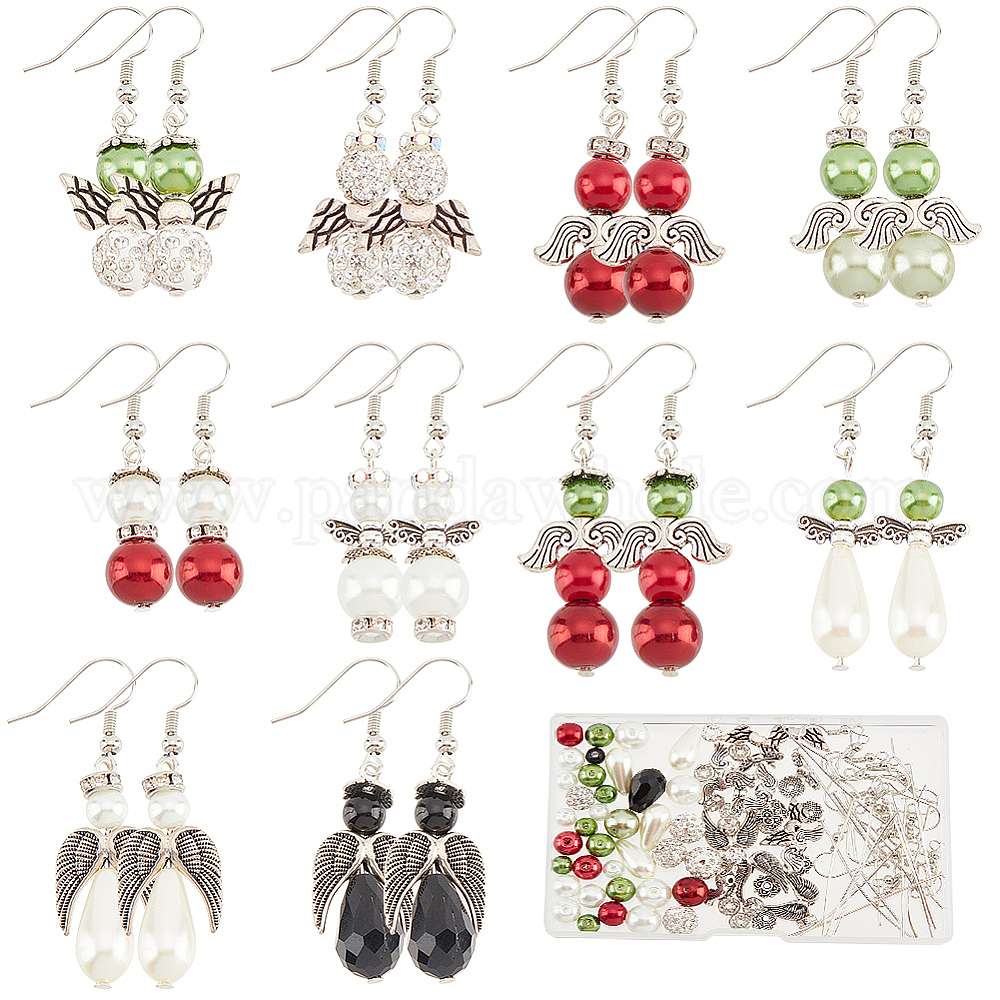 Набор для самостоятельного изготовления сережек феи, включая стеклянный жемчуг и акриловые круглые бусины со стразами и крыльями из сплава, Латунные крючки для сережек (02JDQ4)