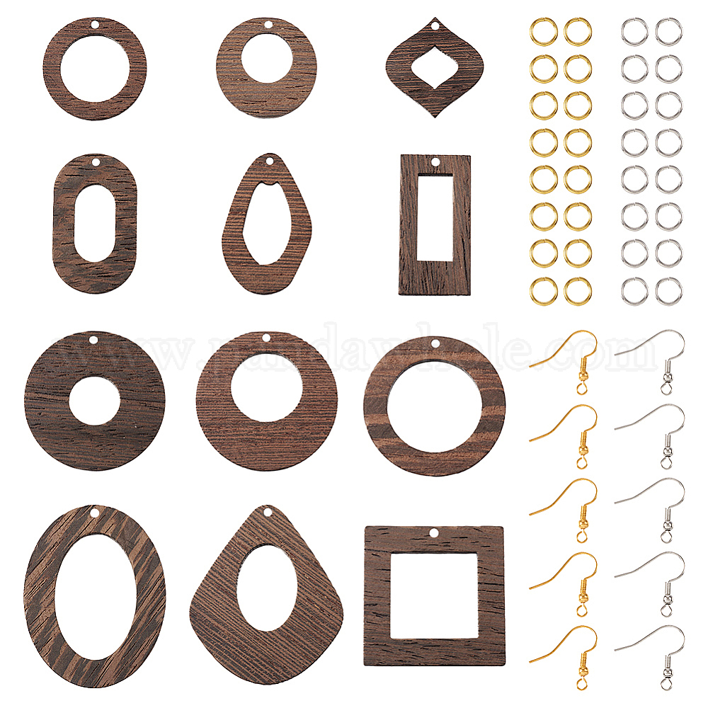 Набор для изготовления геометрических сережек своими руками, включая кольцо, квадрат, пончик и каплевидную подвеску из натурального дерева венге, Латунные крючки для сережек