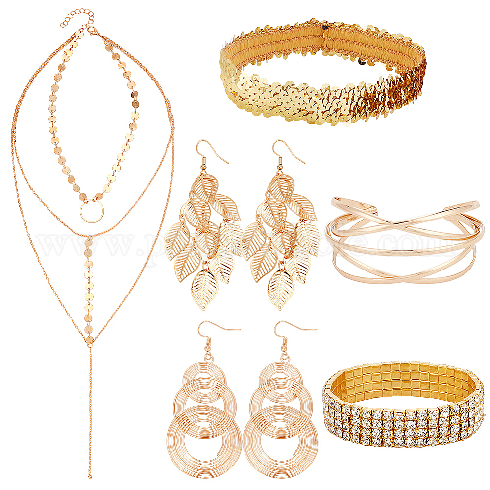 Набор украшений из сверкающего сплава и железа своими руками, серьги-подвески с кольцом и листьями, теннисный браслет со стразами, браслет крест-накрест и многослойное колье