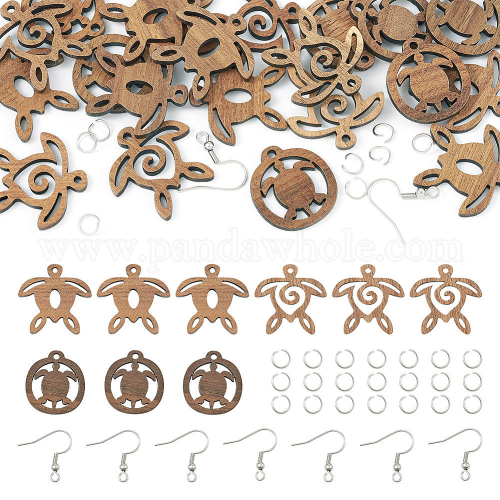 Набор для самостоятельного изготовления сережек-черепах, в том числе деревянные подвески, 304 прыгуны из нержавеющей стали и крючки для серег.