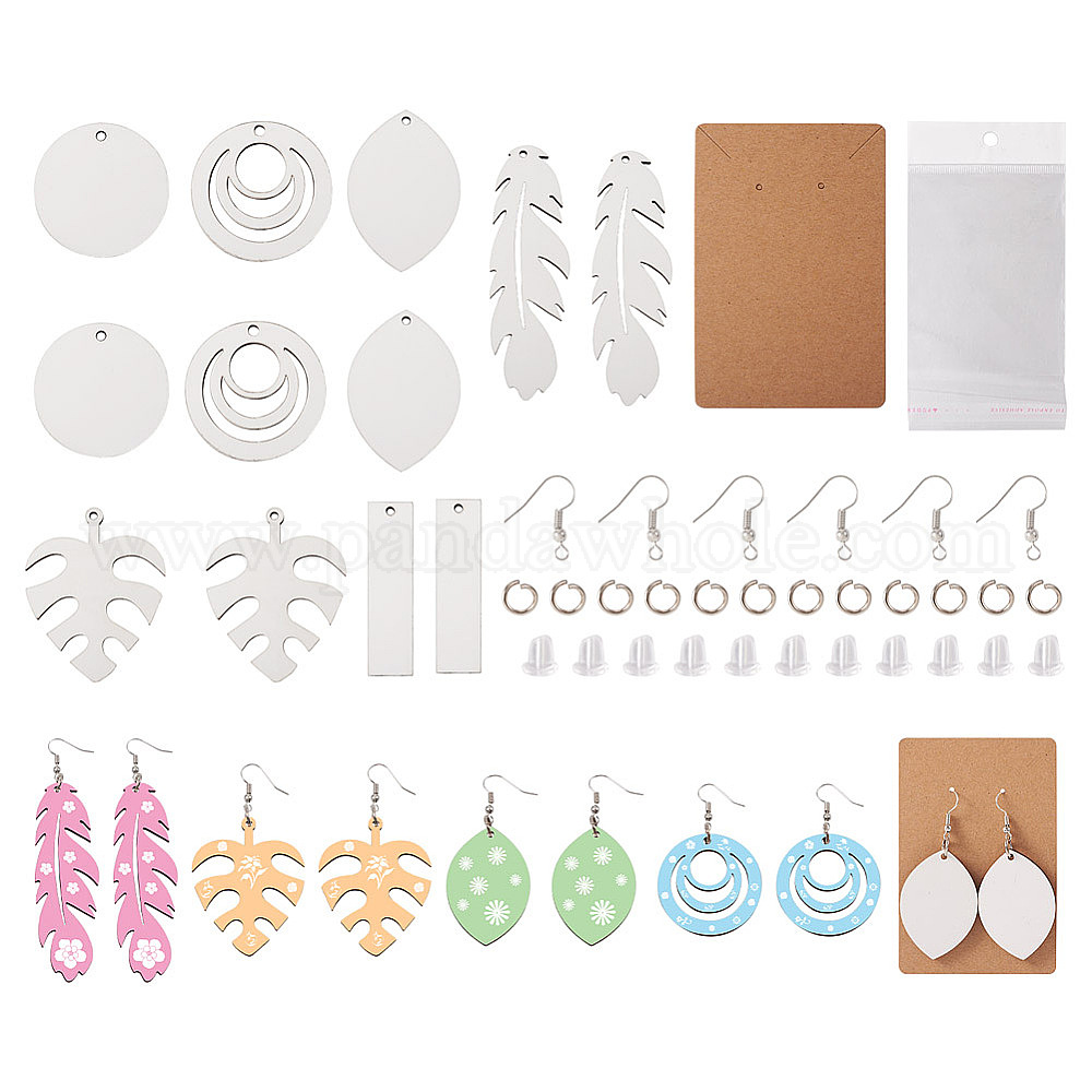 Набор для изготовления пустых сережек для сублимации своими руками, включая листовые, прямоугольные и плоские круглые деревянные подвески из МДФ, Латунные крючки для сережек