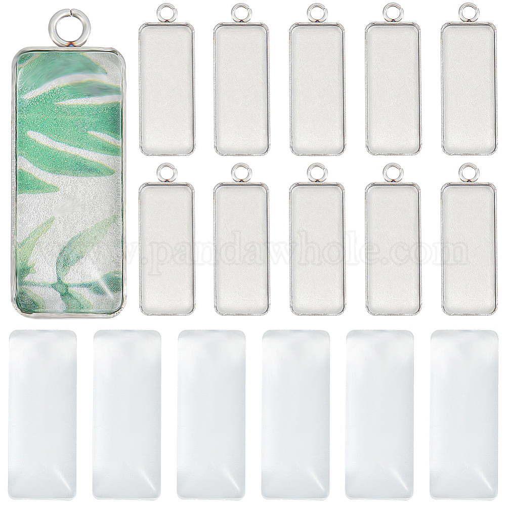 • Нержавеющая Сталь Цвет Набор для самостоятельного изготовления прямоугольного купольного кулона, в том числе 304 настройки подвески из нержавеющей стали, Кабошоны из стекла, цвет нержавеющей стали, 80 шт / коробка