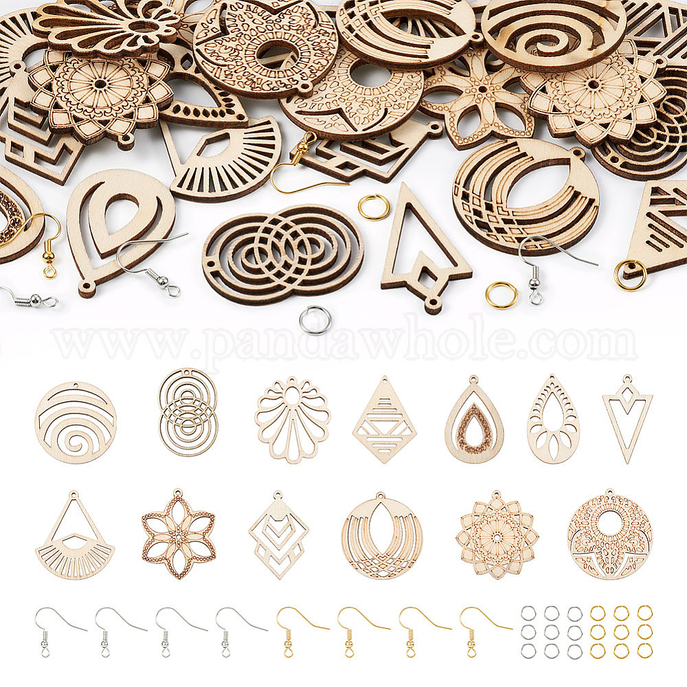 Набор для изготовления полых сережек своими руками, включая деревянные подвески в виде капли, воздушного змея, цветка, ромба и треугольника, медные крючки и кольца для сережек