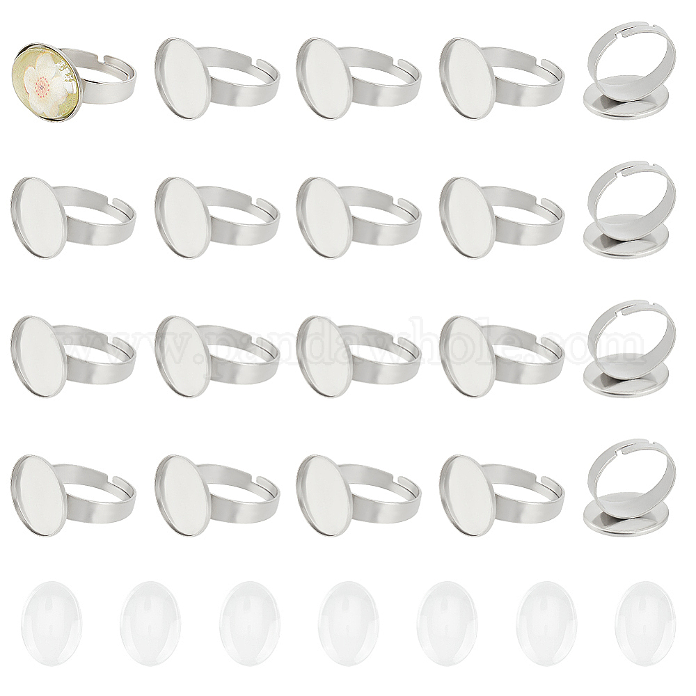Набор для самостоятельного изготовления овального купольного кольца, включая регулируемые 201 кольца для пальцев из нержавеющей стали, Кабошоны из стекла