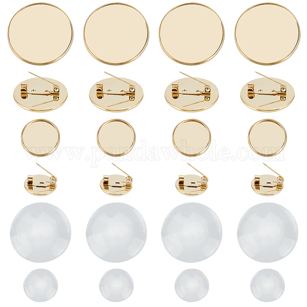 Набор для самостоятельного изготовления броши-купола, включая плоские круглые 304 фурнитура для броши из нержавеющей стали, Кабошоны из стекла