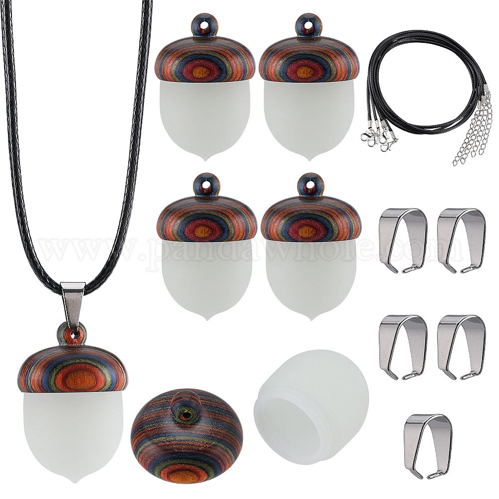 Набор для самостоятельного изготовления ожерелья-медальона из желудей, включая открывающиеся подвески из синтетических светящихся камней-желудей, Шнур из искусственной кожи, 304 из нержавеющей стали оснастки на поруки (02K3DJ)